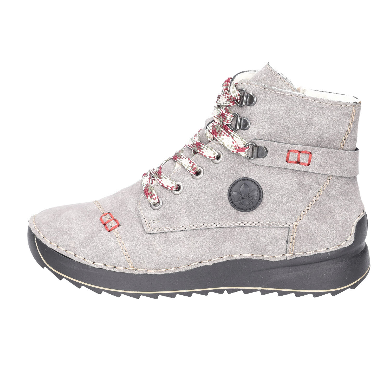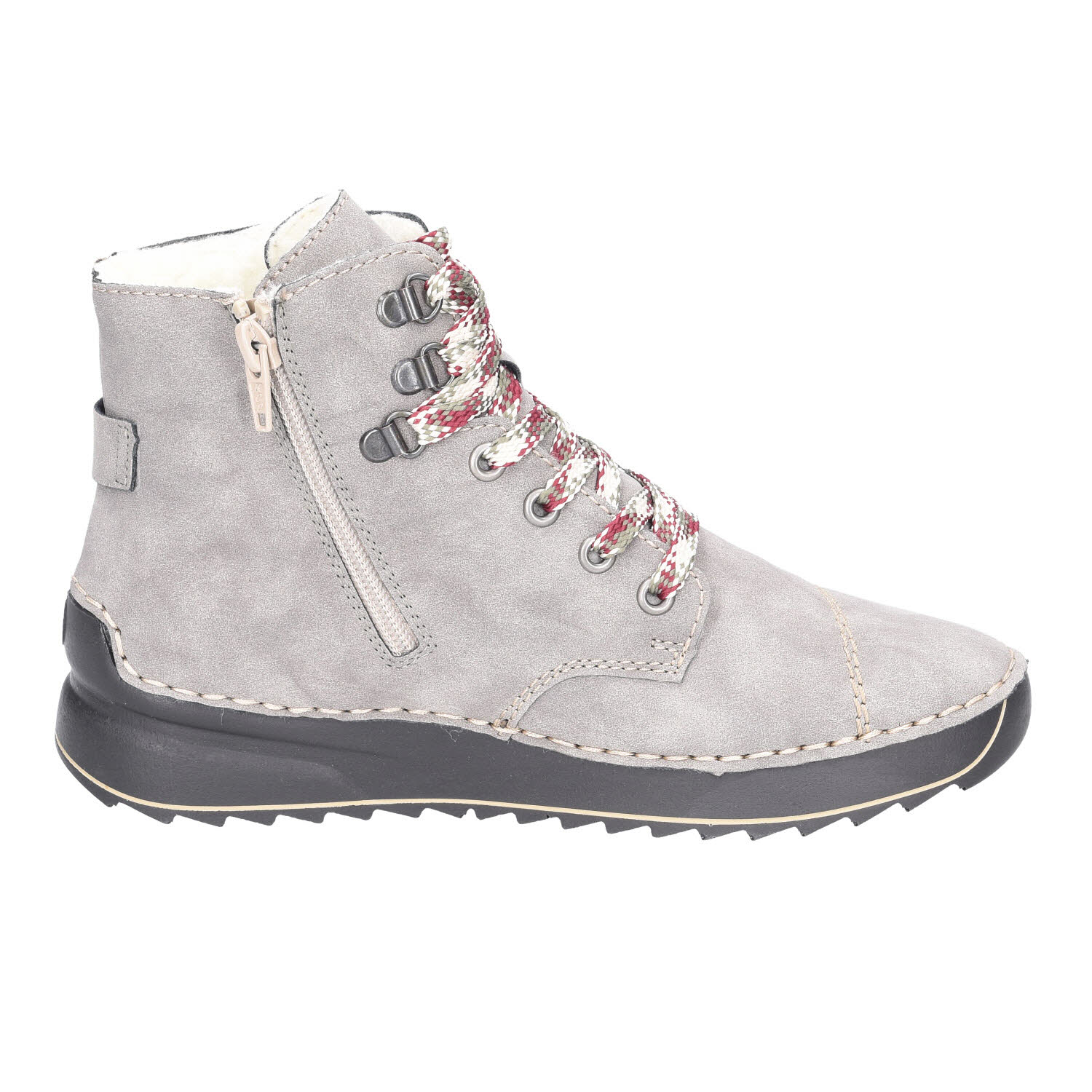 Der Rieker Damen-Boot in der Weite F 1/2 überzeugt durch sein elegantes Design in klassischem Grau. Dieser Schuh ist nicht nur ein echter Hingucker, sondern bietet auch hohen Tragekomfort für den Alltag. Die Schnürung in Kombination mit dem Reißverschluss ermöglicht ein einfaches An- und Ausziehen und sorgt gleichzeitig für eine optimale Passform.